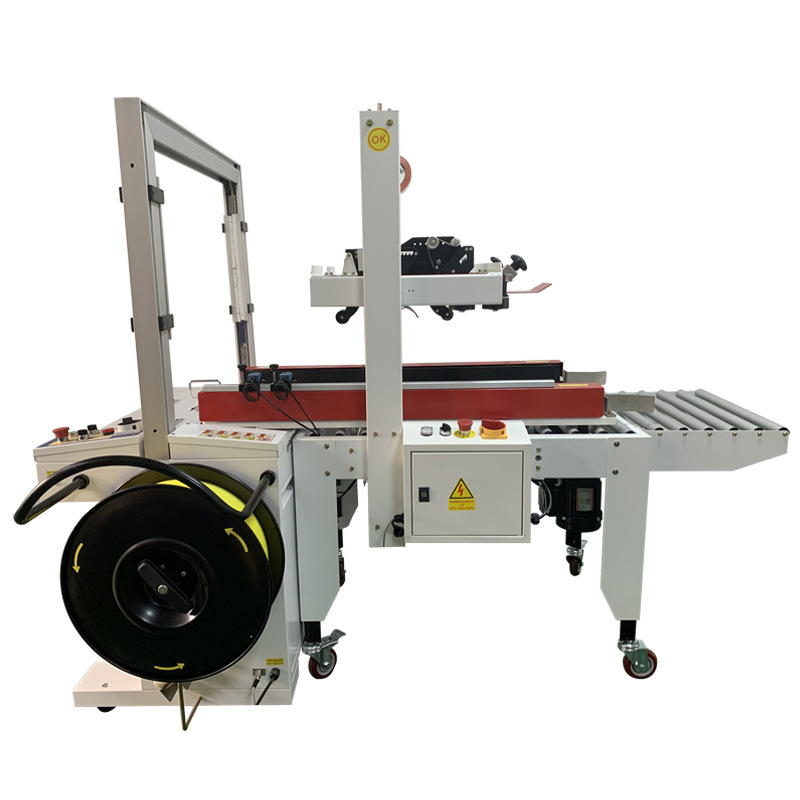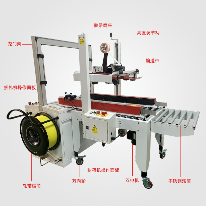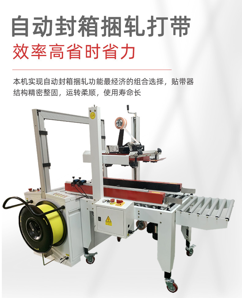 • 高效集成功能:封箱打包一體機將封箱和打包兩個重要的包裝功能集成在一起,減少了包裝過程中的設備數量和操作環節。在一條生產線上,無需將紙箱先送到封箱機再送到打包機,從而節省了時間和空間,大大提高了包裝效率,尤其適用于大規模的生產包裝作業。