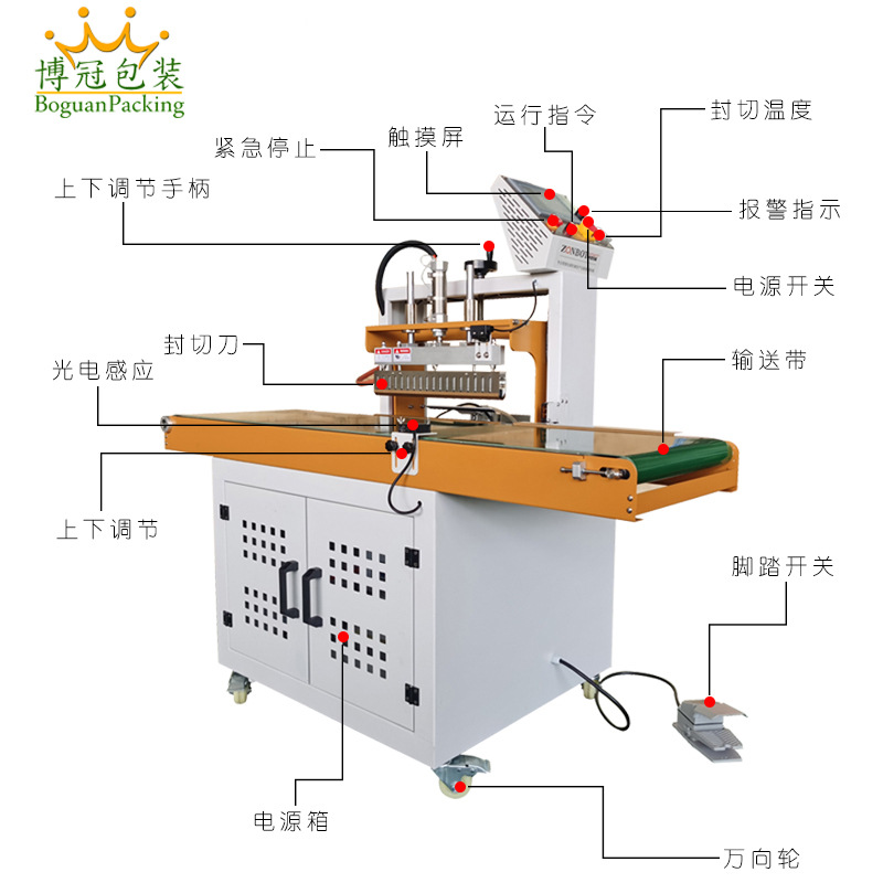 - 連續式封切機:通常結構較為復雜,因為它需要具備連續的傳送系統、精準的封切裝置以及高效的控制系統來實現不間斷的工作。這種復雜性導致其制造成本相對較高,但從長期大規模生產的角度來看,它能夠通過高效的生產效率來分攤成本。