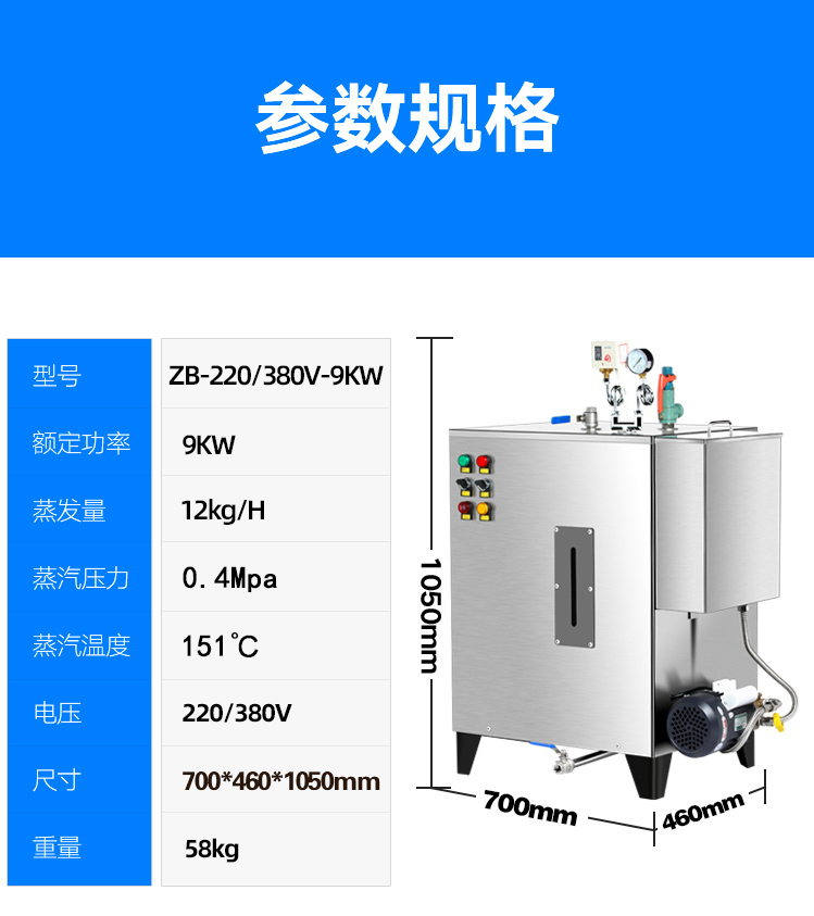不銹鋼全自動電蒸汽發(fā)生器ZQA-380