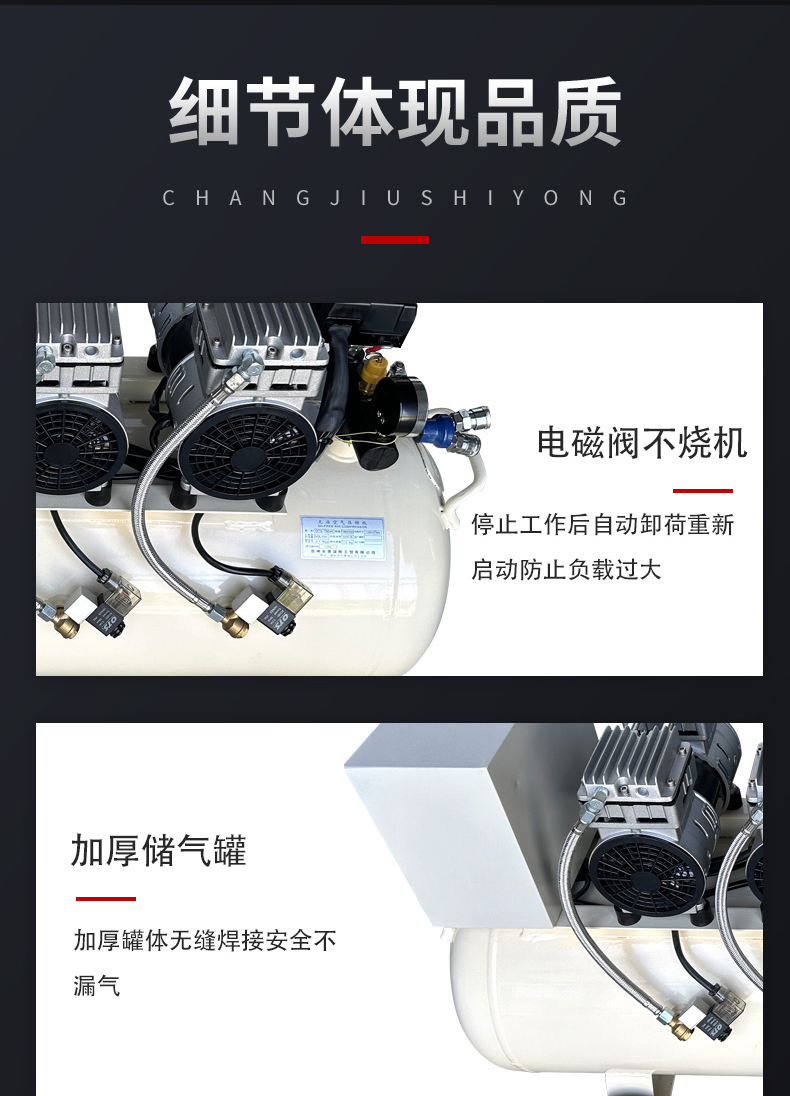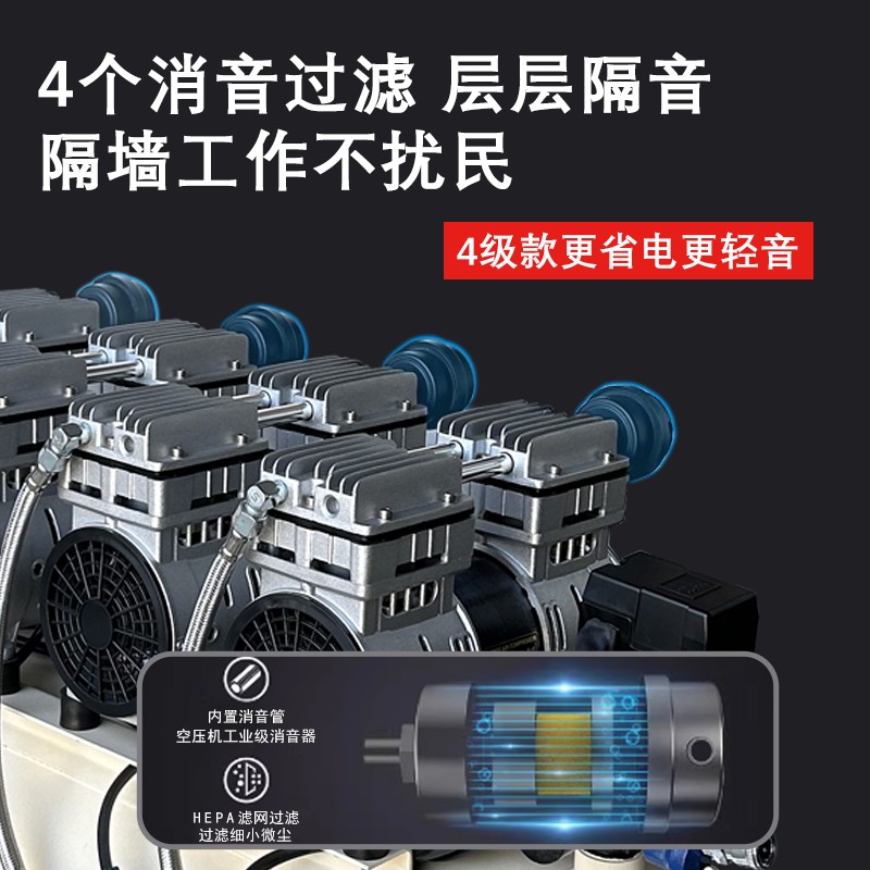 - 牙科設備:在牙科治療椅上,空氣壓縮機為牙鉆、口腔清潔噴槍等設備提供動力。牙鉆通過壓縮空氣驅動,可以高速旋轉,用于去除牙齒上的齲齒部分。口腔清潔噴槍利用壓縮空氣將水或清潔劑霧化,對口腔進行清潔。