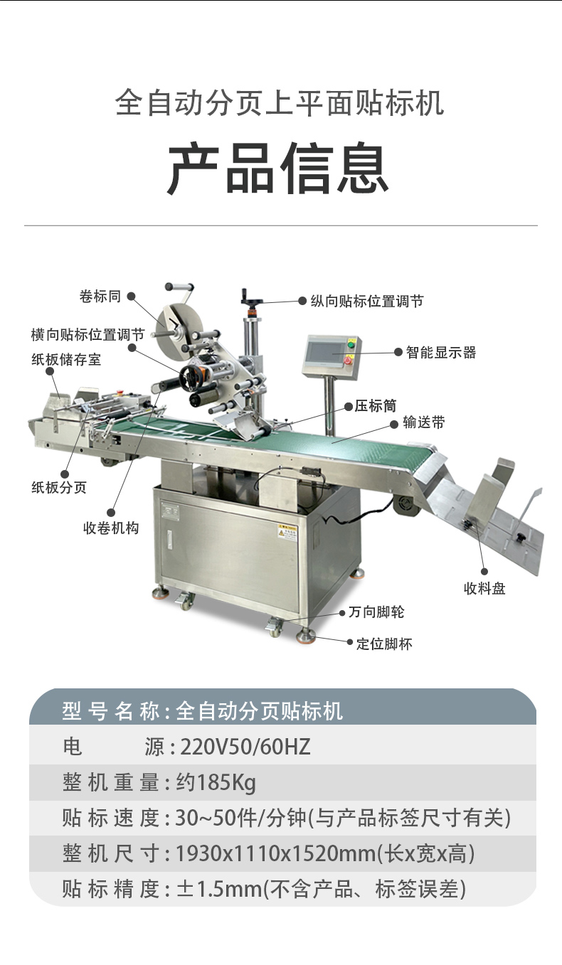 • 質(zhì)量穩(wěn)定:在大規(guī)模生產(chǎn)中,產(chǎn)品質(zhì)量的穩(wěn)定性至關重要。全自動分頁貼標機能夠以穩(wěn)定的性能和高精度的貼標操作,確保每一個產(chǎn)品上的標簽都粘貼得準確、牢固、美觀,保證了產(chǎn)品包裝的一致性和規(guī)范性,有助于企業(yè)樹立良好的品牌形象,提高產(chǎn)品在市場上的競爭力,更好地滿足大規(guī)模生產(chǎn)對產(chǎn)品質(zhì)量的嚴格要求