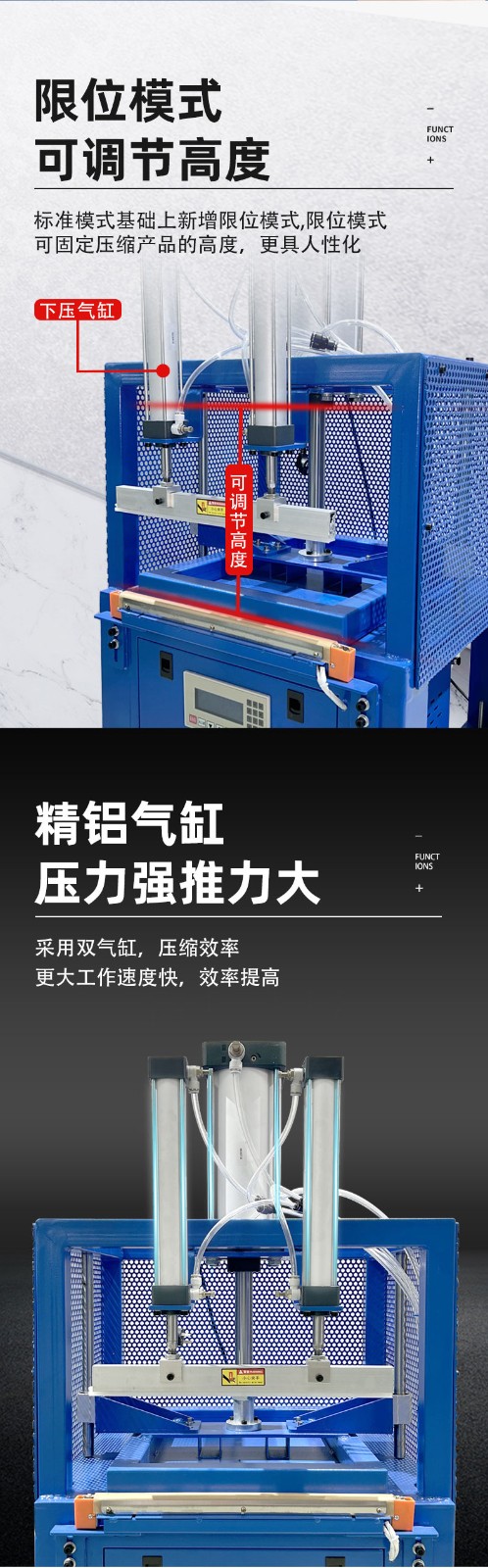 - 壓縮:通常采用機械裝置或氣動裝置產生壓力。在包裝過程中,將待包裝物品放入包裝袋后,設備的壓板等部件會對包裝袋施加壓力,擠壓出其中的空氣,使物品被壓縮至較小體積,便于包裝和運輸。