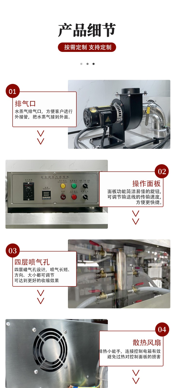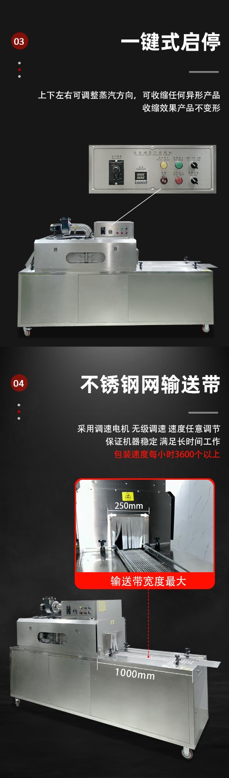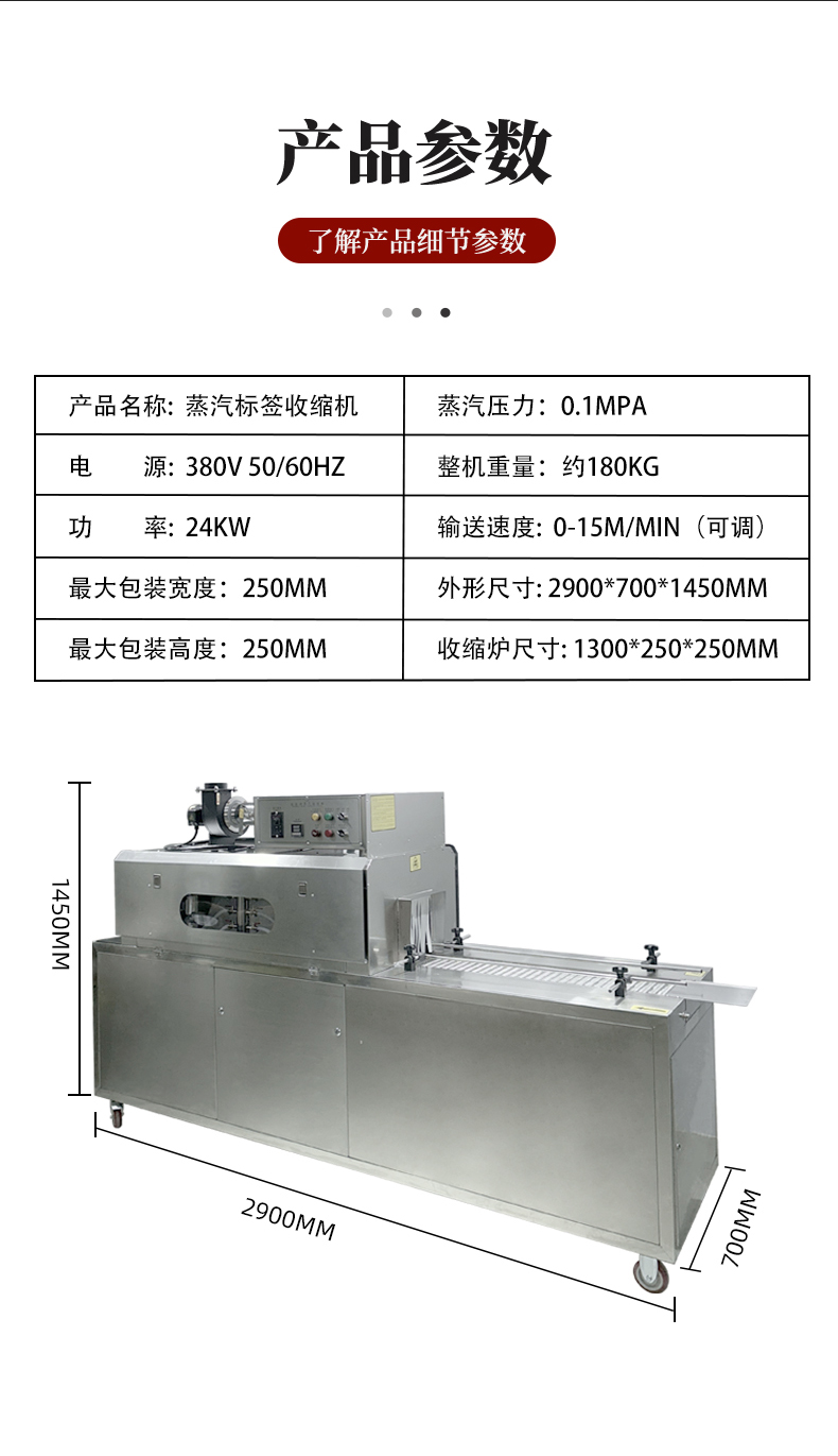 設(shè)備的結(jié)構(gòu)設(shè)計(jì)圍繞 “蒸汽產(chǎn)生 - 加熱收縮 - 產(chǎn)品輸送 - 參數(shù)控制” 展開,核心部件包括四大模塊: