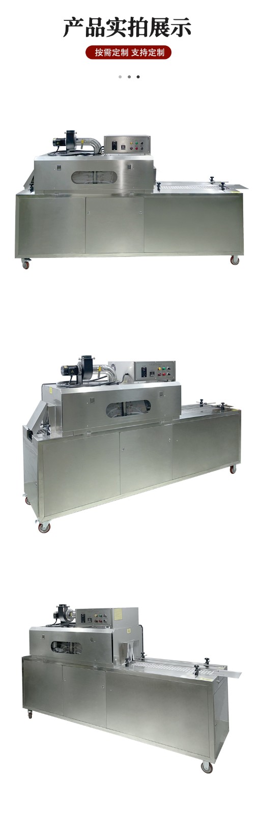- 前期準(zhǔn)備與輸送:先人工或自動(dòng)化設(shè)備將套好收縮膜(如 PVC、PET 膜)的產(chǎn)品放置在輸送帶上,輸送帶通過(guò)無(wú)級(jí)調(diào)速系統(tǒng)啟動(dòng),將產(chǎn)品勻速送入收縮通道。