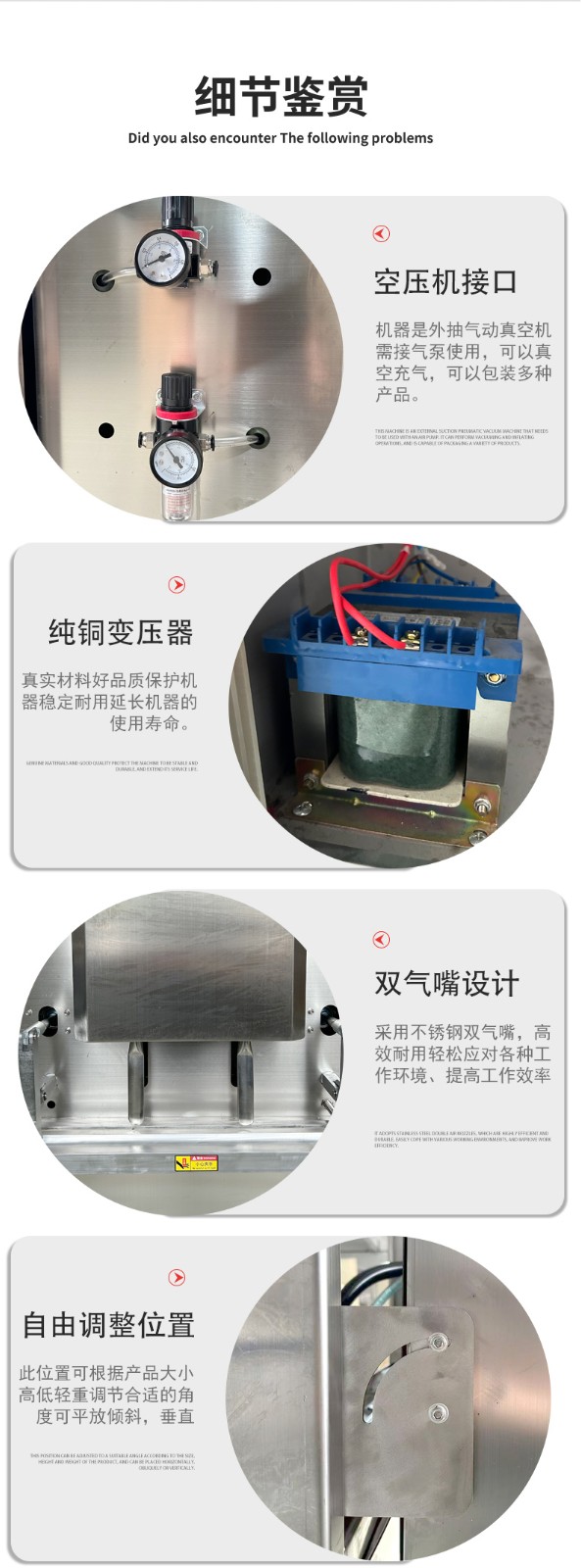 - 顆粒 / 粉末類:塑料顆粒(小批量)、橡膠顆粒、化工助劑(如抗氧劑、穩(wěn)定劑),真空后防止運(yùn)輸中撒漏,且隔絕空氣中的雜質(zhì);