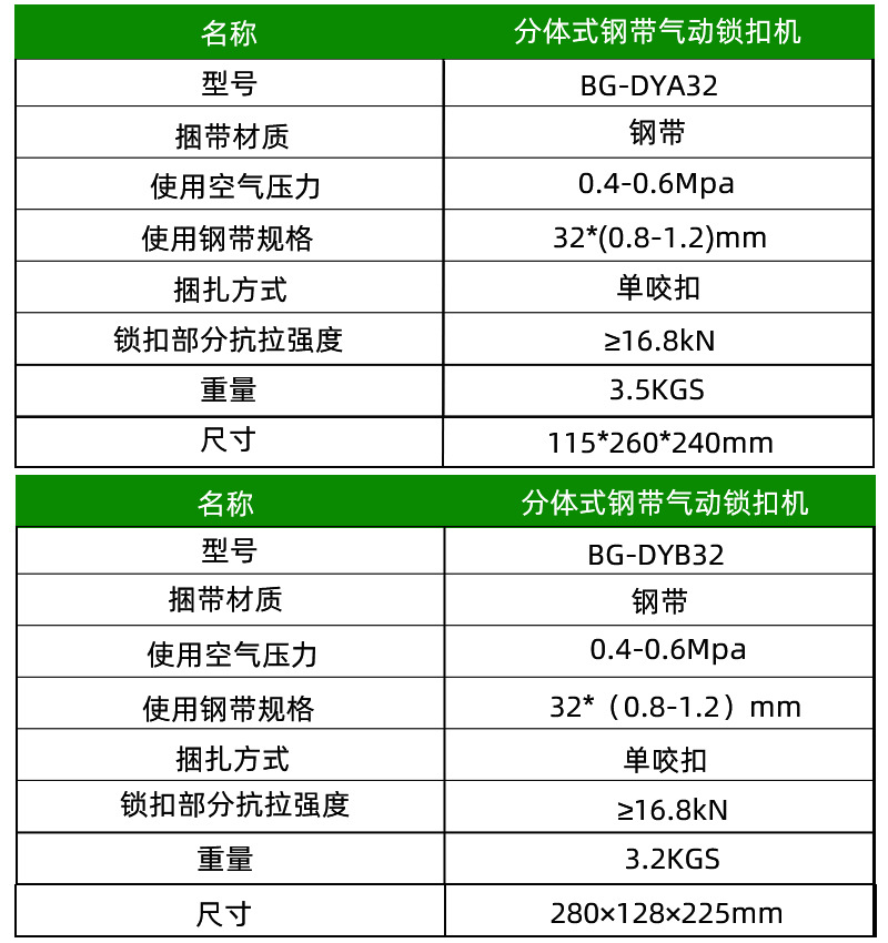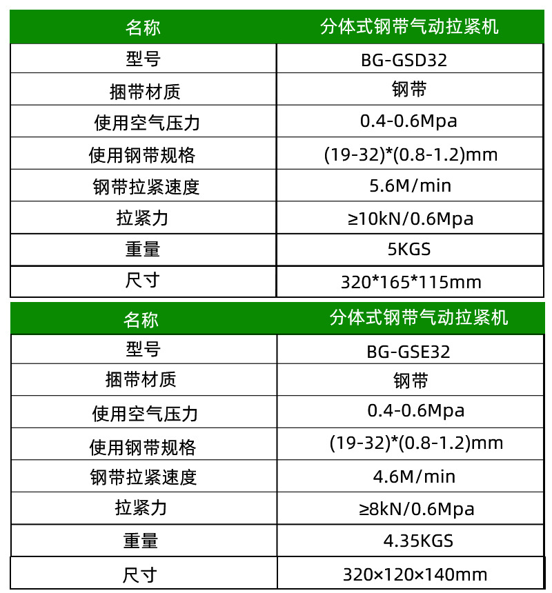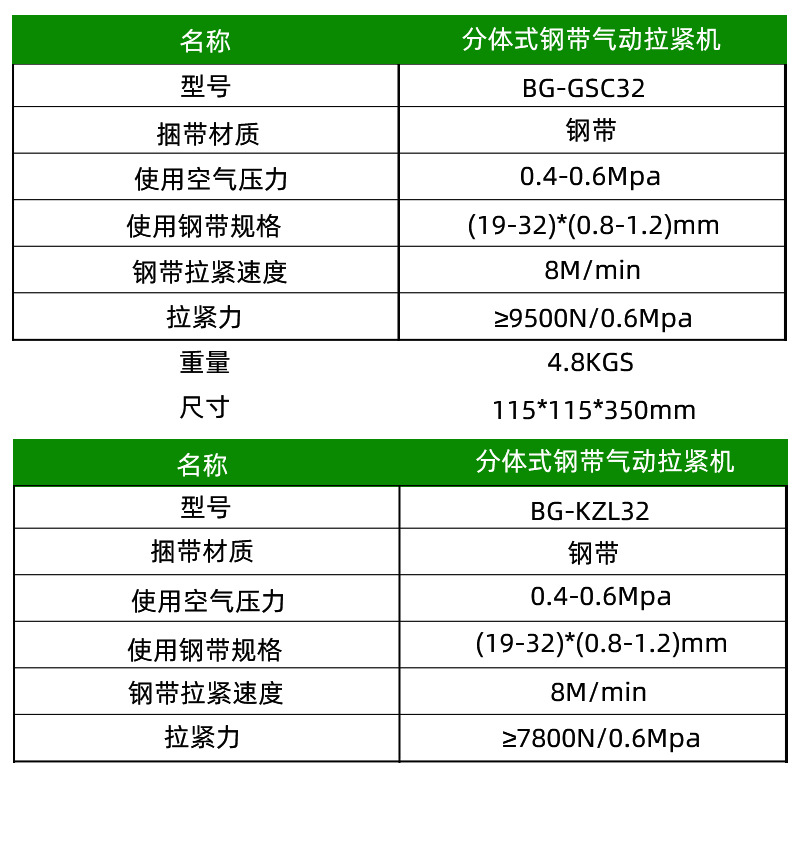 氣動分體式鋼帶打包機BG-GSC32