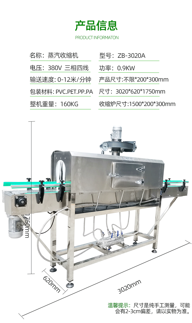 椰子洗潔精標簽蒸汽熱收縮包裝機3020A